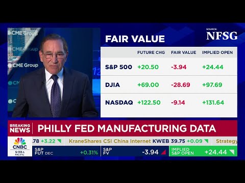 All right, we're just a few seconds away from some new manufacturing data from the Philadelphia Fed. The futures ahead of that are uh higher this morning. Dow futures up by 100, but off the highs of the session.Let's get over to Rick Santelli. He's standing by at the CME in Chicago. Rick, >> yes, you know, one of the few numbers that are uh being released, of course, this comes from the Federal Reserve system, so it's still operating.Philly Fed business outlook. This is an October number, so it's pretty fre ...