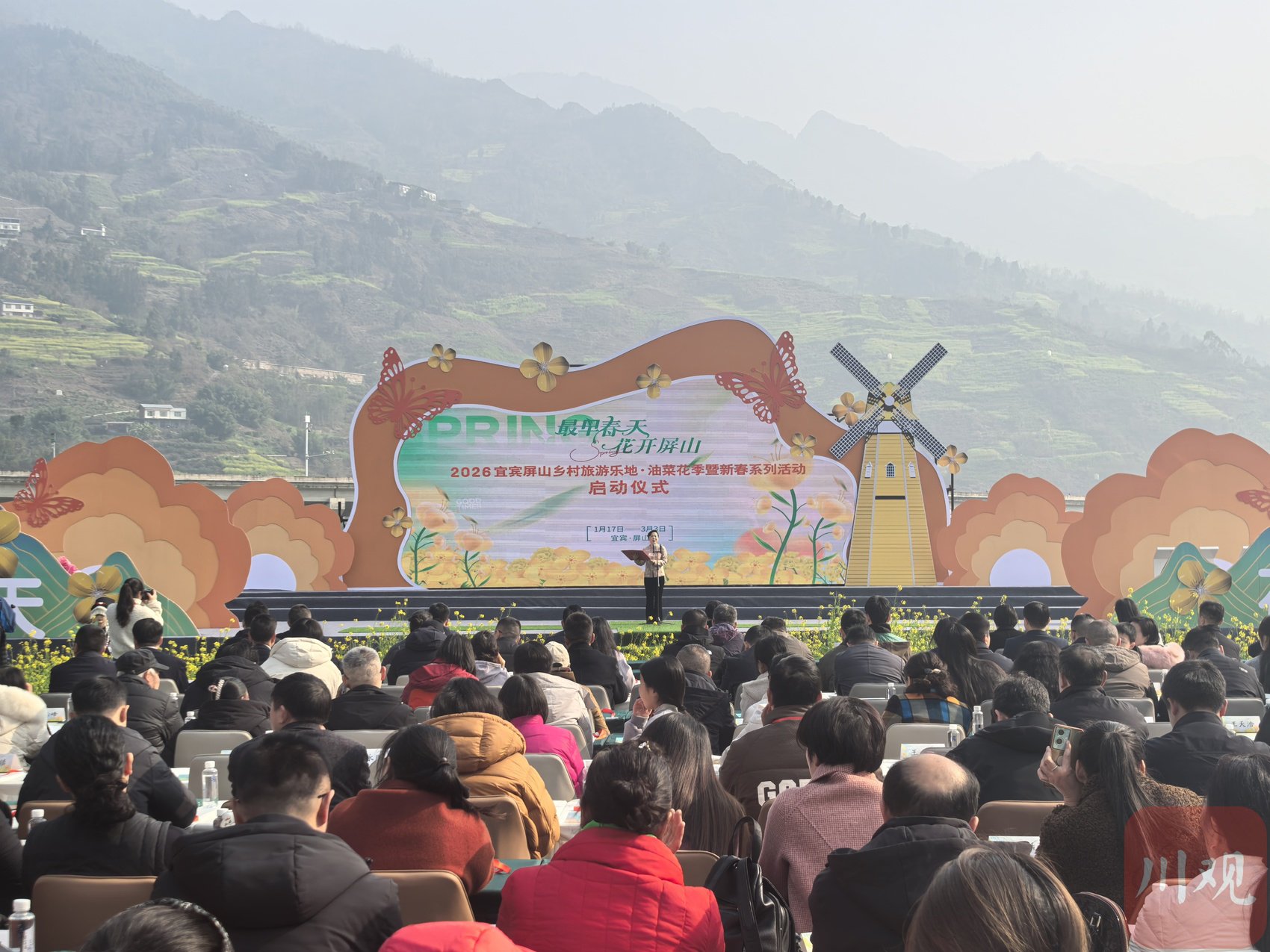 川观新闻宜宾观察 张梦露 曹洋 当全国多地仍寒意正浓时,宜宾屏山中都镇的万亩金黄花海已在冬日暖阳下竞相绽放。1月17日,2026宜宾屏山乡村旅游乐地·油菜花季暨新春系列活动在中 都镇启动。本届活动主会场设于花海核心区,将持续至3月3日,通过6大主题活动+N个体验场景,为游客带来从"观光打卡"到"深度品游"沉浸式体验。 走进中都镇,漫山遍野的油菜花与青山绿水交相辉映,构成一幅美丽的冬日画卷。"得益于中都河流域独特的干热少雨气候和种植的早熟油菜花品种,这里 的油菜花比川南其他地区早开两个多月。"中都镇文旅中心工作人员吕旭梅介绍,当地油菜花花期可从上年11月持续至次年3月,形成独具特色的"花雪同 晖"景观。 这是当地举办的第九届油菜花文化旅游活动。与往年相比,今年实现了从"静态观赏"到"沉浸式体验"的全面升级。"我们策划了花海音乐会、田野摄影展、 非遗集市、农事体验等多元业态,是为了打破传统赏花游的单一模式。"屏山县宇客景区管理有限公司副总经理李川介绍,例如此次主打推出"春日共鸣 花 田Live"音乐会,是希望让游客在扑鼻花香与悠扬乐音的交融中,收获视觉与听觉的双重治愈。 "花海千人宴"是特色体验之一。在金色花海的 ...