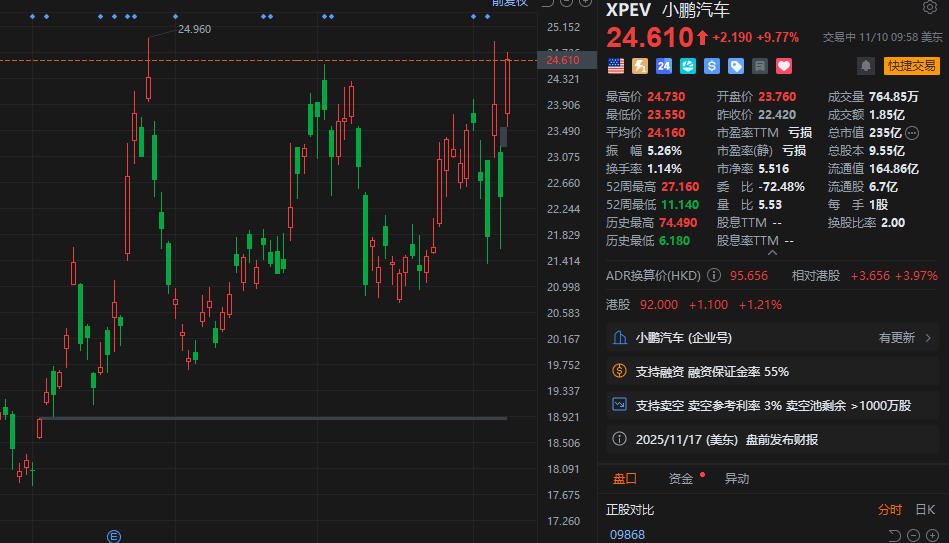 美股异动丨利好叠加,小鹏汽车大涨超10%