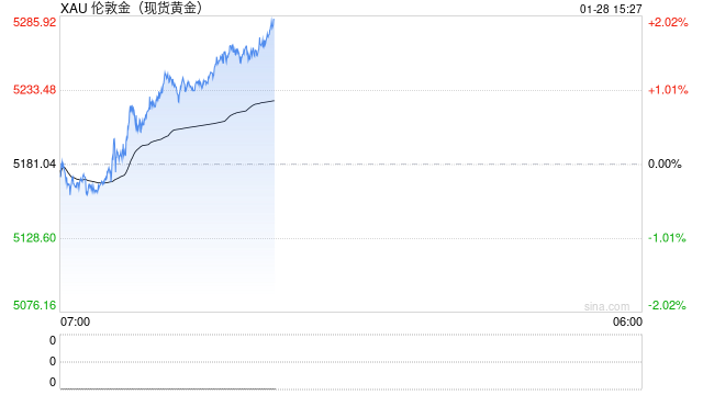 每经AI快讯,1月28日,现货黄金上涨超1%,达到创纪录的每盎司5240.32美元的高点。 每经AI快讯,1月28日,现货黄金上涨超1%,达到创纪录的每盎司5240.32美元的高点。 ...