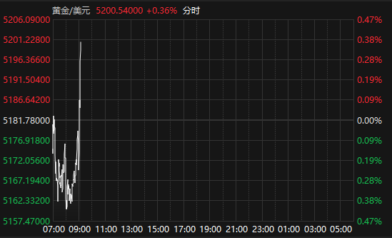 据Choice数据,1月28日早盘,国际现货黄金突破5200美元/盎司关口,截至9:08报5200.54美元/盎司,涨 0.36%,续创历史新高。 上证报中国证券网讯 据Choice数据,1月28日早盘,国际现货黄金突破5200美元/盎司关口,截至9:08报 5200.54美元/盎司,涨0.36%,续创历史新高。 ...