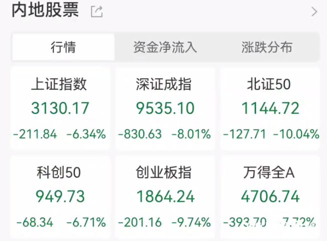 Group 1 - The A-share market experienced a significant decline due to Trump's tariff policy, with the Shanghai Composite Index dropping 6.34% to 3130.17, and the Shenzhen Component Index falling 8.01% to 9535.10 [1][2] - Over 5200 stocks in the market declined, with more than 1400 stocks hitting the daily limit down [1] - The agricultural sector saw gains, with stocks like Shennong Seed Industry and Dunhuang Seed Industry hitting the daily limit up, indicating a counter-trend performance amidst the overall market downturn [2] Group 2 - The U.S. stock market faced severe sell-offs, with the Nasdaq entering a technical bear market, dropping over 20% from its record high [6] - Trump's tariffs included a 34% increase on goods from mainland China, with other countries facing varying rates, leading to widespread market volatility [5] - Analysts suggest that the tariffs are more symbolic and emphasize the importance of negotiation and potential adjustments in response to the situation [7] Group 3 - The consumption electronics sector saw significant declines, with over 20 stocks, including GoerTek and Luxshare Precision, hitting the daily limit down [3] - The server, AI applications, and renewable energy sectors also experienced substantial pullbacks, reflecting broader market concerns [3] - Analysts from various brokerages highlight that boosting domestic demand will be crucial in mitigating the impact of the tariffs on the economy [8]
