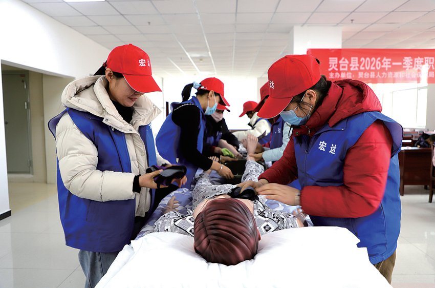 在各类培训工种中,园艺工冬季果园管护培训贴合县域产业实际,成为群众参与的热点。培训现场,授课老师结合灵台 果园种植特点,以"理论讲解+现场实操"的方式,手把手指导学员开展冬季果园修剪、清园防冻、水肥管控等实操训练, 详解剪口角度、伤口保护、防冻剂配制等关键技巧,破解果农冬季管护难题。学员们认真聆听、动手实践,快速掌握实 用技能,为来年果园提质增效、务工增收打下坚实基础,切实让培训成果转化为增收实效。 此次一季度职业技能培训坚持全县统筹、精准施策,全面覆盖本县户籍具有正常劳动力的人口,明确男性18至55周岁、 女性18至50周岁为培训对象,聚焦市场需求和群众就业意愿,科学设置电工、养老护理员、家政服务员、园艺工、保育 师、创业能力6个热门培训工种,计划培训400名劳动者。 培训始终坚持"实用、实效、接地气"的原则,推行"理论+实操"的教学模式,邀请专业讲师授课,重点强化实操技能训 练,确保学员学有所思、学有所获、学以致用。同时,依托"金桥地企互惠"行动,精准对接企业用工需求,推动培训与 就业无缝衔接,既破解群众就业难题,也为企业输送技能型人才,实现地企互惠、双向共赢。 灵台:冬闲技能培训提升就业底气 养老护理实 ...