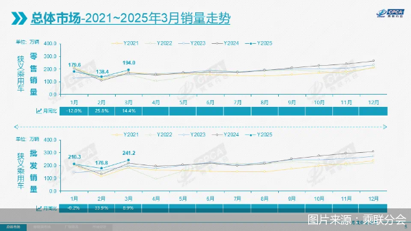 在3月乘用车零售强势拉动下,今年一季度国内车市迎来"开门红"。4月9日,中国汽车流通协会乘用车 市场信息联席分会(以下简称"乘联分会")发布的数据显示,2025年一季度乘用车零售512.7万辆,同 比增长6%。乘联分会方面表示,一季度车市"开门红"成色超预期。 月销加速放量 来自乘联分会的数据显示,今年一季度乘用车零售量达512.7万辆,同比增长6%。乘联分会秘书长崔东 树表示:"同比增长6%超过此前预期。" 据了解,今年一季度,车市处于销量爬坡状态。去年底,车企及经销商的一波优惠促销提前透支销量, 今年1月乘用车市场零售销量降至179.4万辆,同比下降12.1%,环比下降31.9%。其中,自主、合资、豪 华三大品牌板块月销均出现同比下滑,让今年车市"低位"开局。不过,在汽车以旧换新等利好政策助力 下,2月车市开始回温,也将今年前2个月的车市销量拉回正增长轨道,但累计同比增长仅为1.2%。 随后,3月车市加速放量。据统计,今年3月,乘用车市场零售194万辆,同比增长14.4%,环比增长 40.2%。崔东树表示,今年3月乘用车零售同比增速为近十年来最高点。 从车市各板块销量看,自主品牌的回暖最为明显。数据显示, ...