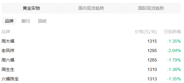 近期,世界黄金协会发布2025年三季度《全球黄金需求趋势报告》显示,第三季度全球黄金需求总量(包含场外交易)达1313吨,需求总金额达1460亿美 元,创下单季度黄金需求的最高纪录。 作为当下市场关注度最高的资产之一,黄金起起落落的价格时刻牵动着投资者心弦,现在还是好的投资时间点吗? 11月14日晚间,金价突然大跳水,现货黄金价格一度大跌3.21%。 截至11月15日17时40分,国内现货金价为935元/克,跌幅为1.37%;国际金价为4082.16美元/盎司,跌幅为2.13%;国内各品牌黄金实物价格均有下跌。 | | 黄金实物 | | 国内现货趋势 | 国际现货趋势 | | | --- | --- | --- | --- | --- | --- | | 品牌 | 银行 | 回收 | | | | | 品牌 | | | | 价格(元/克) | 日涨跌幅 | | 周大福 | | | | 1315 | -1.35% | | 老凤祥 | | | | 1295 | -2.04% | | 周六福 | | | | 1265 | -1.79% | | 周生生 | | | | 1310 | -1.36% | | 六福珠宝 | ...