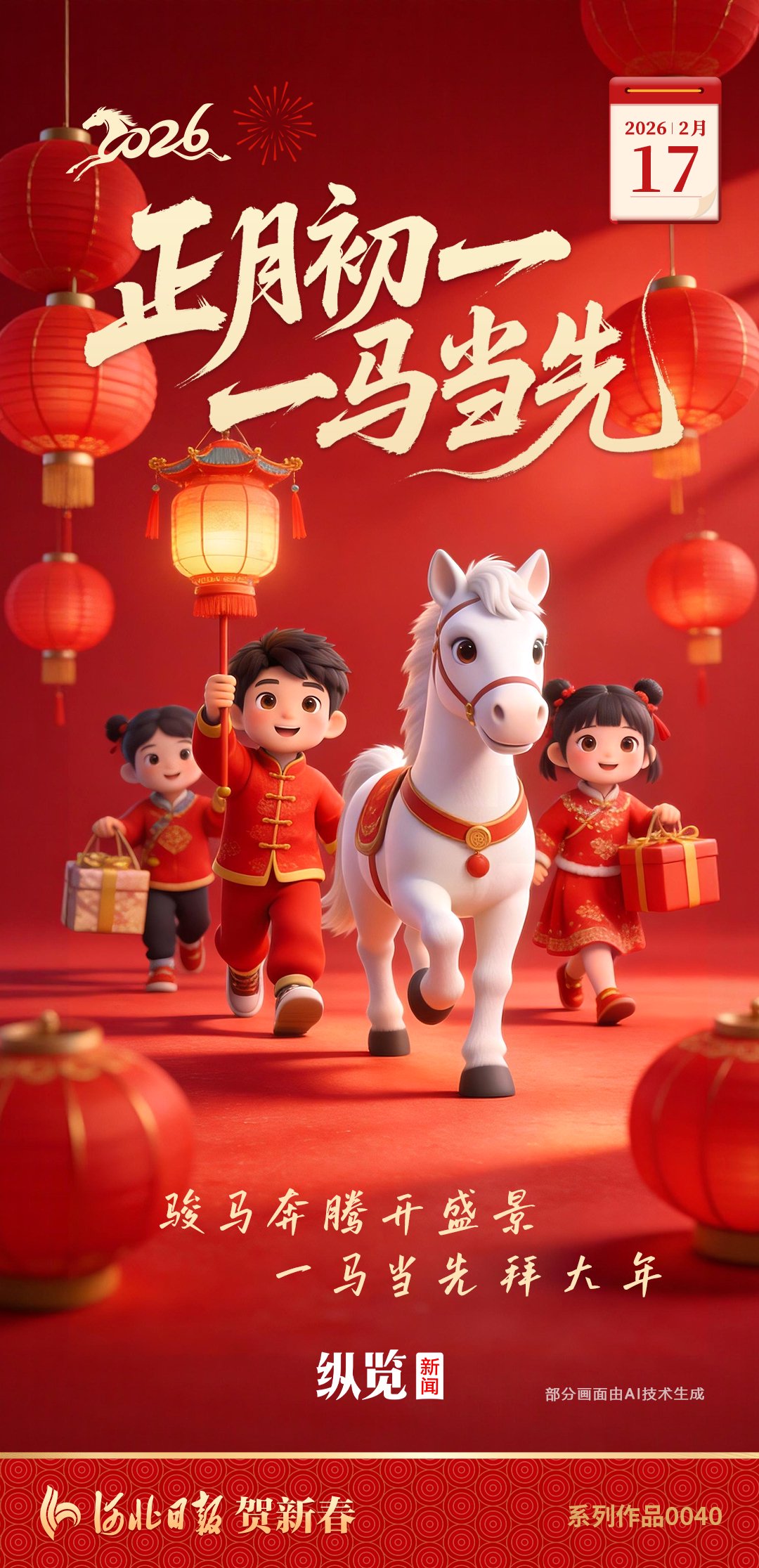 河北日报贺新春|AI海报·正月初一:骏马奔腾开盛景 一马当先拜大年