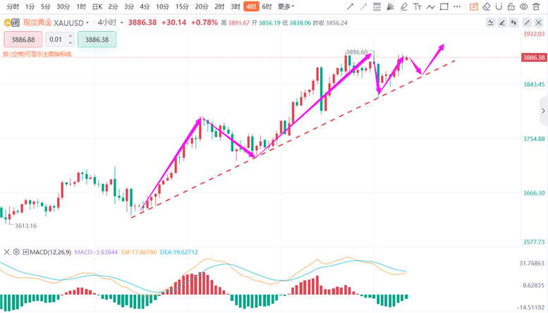 我很庆幸你能停下脚步花几分钟看我的文章,一点小建议,分享出来希望能帮助到各位投资者。 4小时级别现在有一个变化,布林收口,黄金有可能在周五是震荡表现,上方继续关注3895高点得失,下方继 续关注3820得失,不过,黄金本周两次一直未能冲破3900,也形成了高位一定的箱体整理修正,或通过时间换 空间的走法,墨迹整理几日后,再继续强攻站稳3900而发力冲击4000大关;今晚黄金上冲3890回落只有25美元 左右,目前黄金维持逼空拉升中,阻力3897之上谨慎追涨,它若不出现循环打压跳水,而是维持一路连阳走 高,那么下周初基本要站稳3900而进一步强势单边发力,届时就继续强势博续涨;下方关注3860附近支撑,日 内操作保持低多看涨思路不变。目前手上有低位的空单和高位多单不知道如何处理,张德盛可解 一篇文章的牵引,可能看不出什么,但是长长久久的精准分析,才是我们稳步提升利润的主要途径。可能你见 过太多的分析,也见过太多的盈利,然而亏损还是跟随你,那是因为你总喜欢综合分析操作,而市场本身就是 多数必死,少数必盈的抉择。综合分析,不如只跟一人,虽然没人能保证百分百盈利,但是,我们只要建立入 场、出场、风控三位一体的平衡术, ...