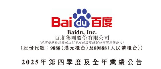 来源:瑞恩资本 百度集团(09888.HK,BIDU)于周四(2月26日)公布了2025年第四季度及全年业绩公告。 百度集团的2025财年业绩显示, 全年营收1,290.97亿元人民币(以下同),同比微降3.0%,主要受传统业务收缩影响, 同时,第四季度起,百度将核心业务重新定义为一般性业务,并细分为AI新业务 其中,AI新业务的营收突破400亿元,同比增长48.1%; 全年净利润(归母)为55.89亿元,同比下降76.5%。 | | | 截至以下日期止三個月 | | | | 截至以下日期止十二個月 | | | --- | --- | --- | --- | --- | --- | --- | --- | | | 2024年 | 2025年 | 2025年 | 2025年 | 2024年 | 2025年 | 2025年 | | | 12月31日 | 9月30日 | 12月31日 | 12月31日 | 12月31日 | 12月31日 | 12月31日 | | | 人民幣元 | 人民幣元 | 人民幣元 | 美元(2) | 人民幣元 | 人民幣元 | 美元中 | | 收入 | 34.124 | 31,174 | 3 ...