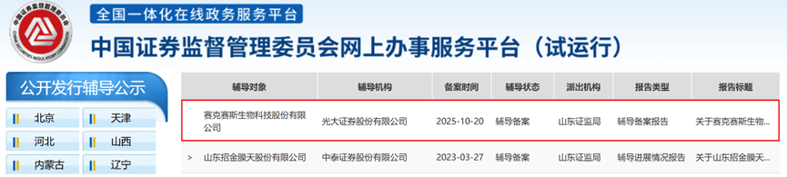 Core Points - The China Securities Regulatory Commission has accepted the application for the initial public offering (IPO) and listing of Sykes Biotech Co., Ltd. on October 20, 2025, with Everbright Securities as the counseling institution [1] - The counseling agreement was signed on October 16, 2025, and other participating institutions include Shanghai Chengming Zezheng Law Firm and Xinyong Zhonghe Accounting Firm [3][4] - Sykes Biotech aims to raise 455 million yuan for projects including the second phase of its biopharmaceutical production and R&D base and development reserve funds [4][5] Financial Performance - Sykes Biotech's revenue for 2021, 2022, and 2023 was 437.25 million yuan, 435.82 million yuan, and 379.47 million yuan, respectively, showing a decline in 2023 [8] - The net profit for the same years was 126.75 million yuan, 136.51 million yuan, and 150.16 million yuan, indicating an increase in net profit over the years [8] - The total assets at the end of 2023 were 936.55 million yuan, with a debt-to-asset ratio of 8.58% [9] R&D and Market Position - The company specializes in the R&D, production, and sales of implantable biomaterials and medical devices, with major products including surgical anti-adhesion solutions and absorbable medical adhesives [8] - The gross profit margins for the reporting periods were 90.52%, 88.28%, and 87.45%, indicating strong profitability [10] - Sykes Biotech's R&D expenses were 24.93 million yuan, 24.31 million yuan, and 35.00 million yuan for the years 2021, 2022, and 2023, respectively, with R&D investment as a percentage of revenue increasing to 9.22% in 2023 [10] Corporate Governance - The controlling shareholder of Sykes Biotech is Shandong Saixing Holding Group Co., Ltd., which holds 72.11% of the shares [10] - The company faced regulatory scrutiny in September 2024, with warnings issued to its former chairman and executives for failing to act diligently and responsibly [11]