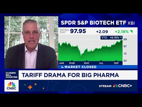 President Trump announcing last night as well that he will impose a 100% tariff on pharmaceutical products entering the US starting October 1st unless they are building manufacturing plants here stateside. EU and Japan will be exempt from the 100% uh with the US honoring the 15% cap that was put into place under the current trade deals. The sector taking the news in stride today.See a lot of green right there on the screen with the big pharma names. Our next guest says the move could be a relief for investo ...