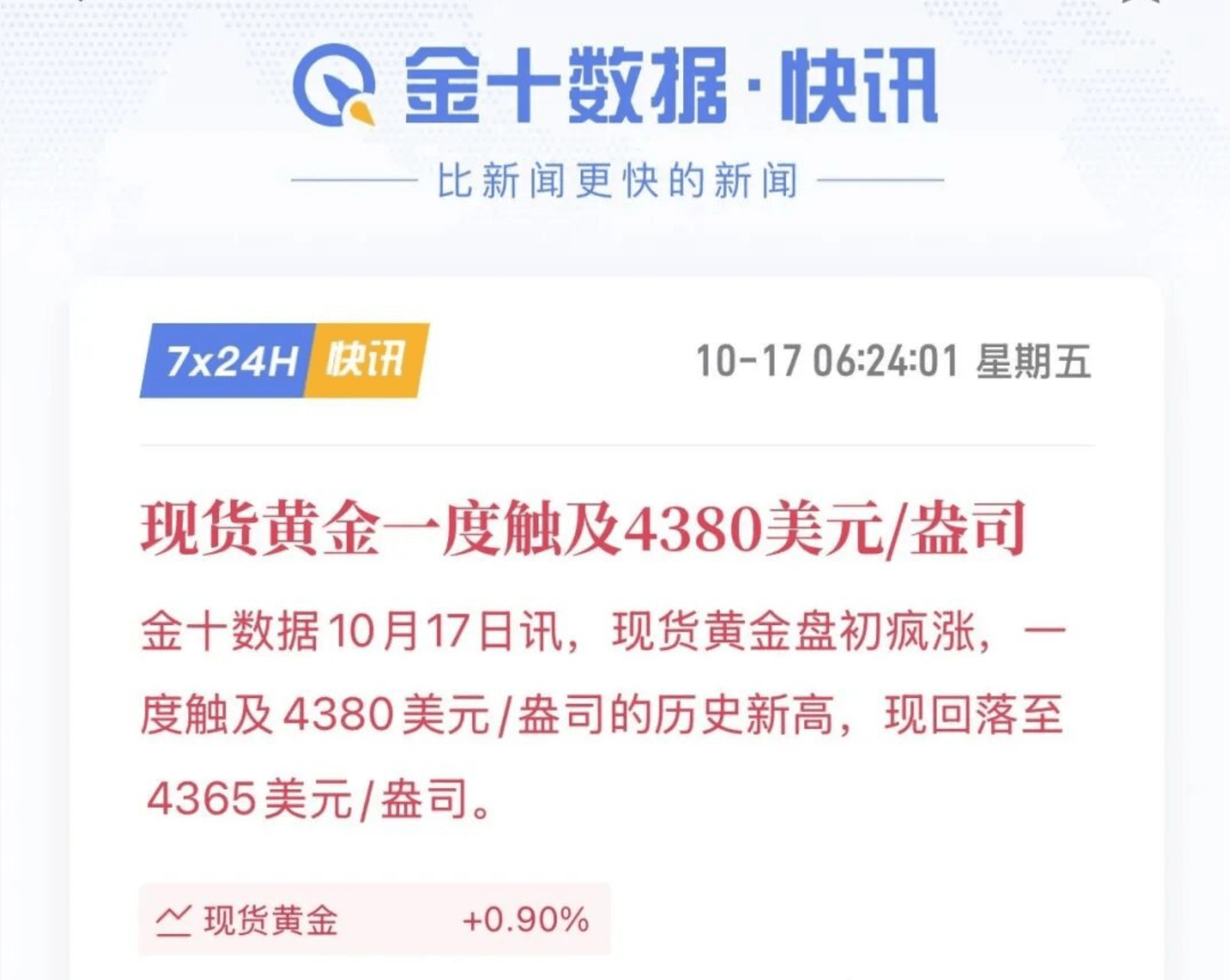 刚刚 突破4350美元/盎司 金价再创新高!特朗普:将与普京在布达佩斯举行会晤