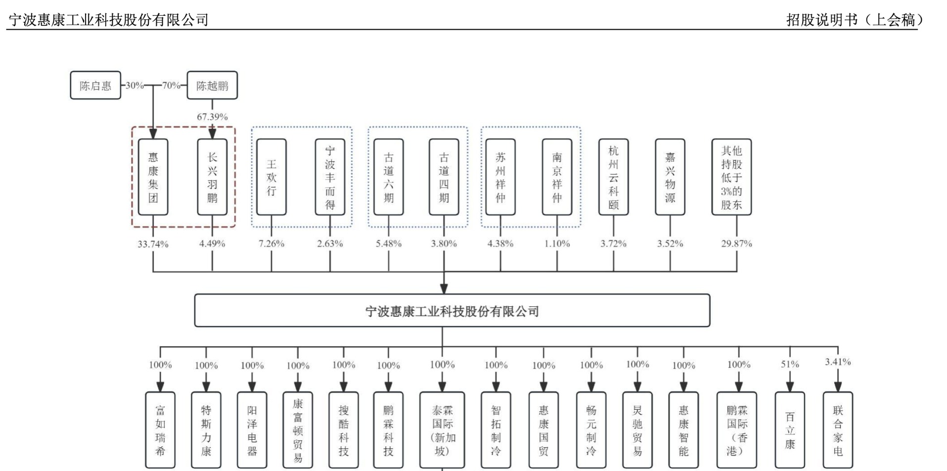 2026年1月22日,宁波惠康工业科技股份有限公司(下称"惠康科技")深交所主板IPO上会审查。《招股说明书》显示,公司深耕制冷领域,是一家以制冷设 备的研发、生产及销售为核心业务的国家级高新技术企业,主要产品包括制冰机、冰箱、冷柜、酒柜等,主要应用于民用及商用领域。 2022年、2023年、2024年及2025年上半年,惠康科技分别实现营业收入19.3亿元、24.93亿元、32.03亿元,13.89亿元;扣非净利润分别为2.24亿元、3.45亿 元、4.42亿元、1.93亿元。 惠康科技成立于2001年,曾于2018年9月在宁波股权交易中心挂牌,并于2023年3月终止挂牌。截至目前,陈越鹏通过惠康集团有限公司(下称"惠康集 团")、长兴羽鹏企业服务合伙企业(下称"长兴羽鹏")两家公司,合计持有38.23%股份,为实际控制人。成功发行后,陈越鹏所持股份将会稀释至 28.68%。 图源招股说明书 南都记者注意到,深交所在第一轮问询中,曾对惠康科技实控人的认定提出疑问。从上图可以看到,惠康集团70%股份掌握在陈越明手中,30%由陈启惠持 有,而陈启惠系陈越鹏父亲。 实际上,惠康集团原大股东一直为陈启惠,持股比例一 ...