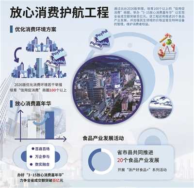 2026年,在杭州生活的你或许会感受到这些变化:点开外卖软件,能直接看到后厨实况;在商场购 物犹豫不决时,信用标识让你放心下单;甚至家门口的电梯故障,救援人员来得比外卖还快。这些实实 在在的改变,正源于浙江省市场监管领域一系列新动作。 日前,记者从浙江省市场监管(药监)工作会议暨党风廉政建设工作会议获悉,今年,一系列围绕 消费、食安、营商、出海的"十大工程"将全面落地——这意味着,监管的力量将更悄无声息地融入日 常,守护每个人的生活点滴与经营期待。 为激发消费活力,全省大力推进放心消费护航工程。今年将举办百县百场、万企参与、数实融合 的"3·15放心消费嘉年华",开展 "浙产好食品+"系列活动,培育上百个 "信用促消费"商圈 ,新发展一批 无理由退换货实体店,政企社联合打造预付式消费信用场景,推广消费纠纷"一键和解""在线化解"模 式,以信用建设优化消费体验,让消费者敢消费、愿消费。 针对平台收费不透明、不合理问题,浙江通过实施平台经济攀高工程督促平台落实收费合规指南, 持续开展收费治理,优化网络生态。为了遏制"内卷式"低价劣质竞争,将建立价格异常监测制度,增加 相关产品抽检频次,引导企业从"卷价格"转向"卷 ...