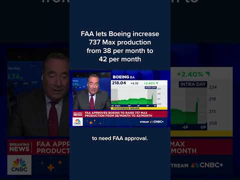 The FAA has given Boeing its approval to increase 737 Max monthly production from 38 per month, where they are right now, up to 42 per month. Now, we knew that Boeing was going to ask for this approval at some point from the FAA, but we've been told that this afternoon, Brian Bedford, the administrator for the FAA, has started notifying leaders on Capitol Hill that after reviewing the process, he has concluded that Boeing has the steps completed and has the processes in place to safely and and effectively m ...