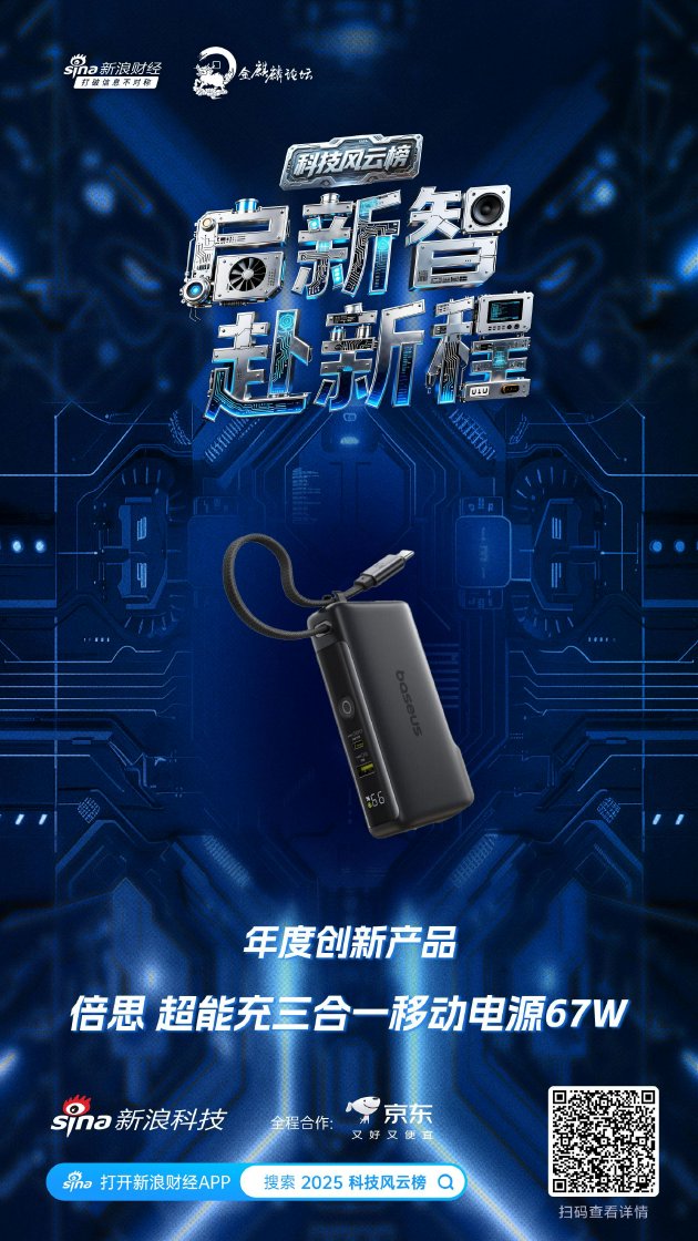 倍思超能充三合一移动电源67W获新浪2025科技风云榜年度创新产品奖