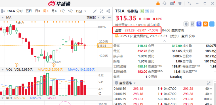 美股盘前丨大行唱衰马斯克“美国党”!特斯拉盘前大跌逾7%