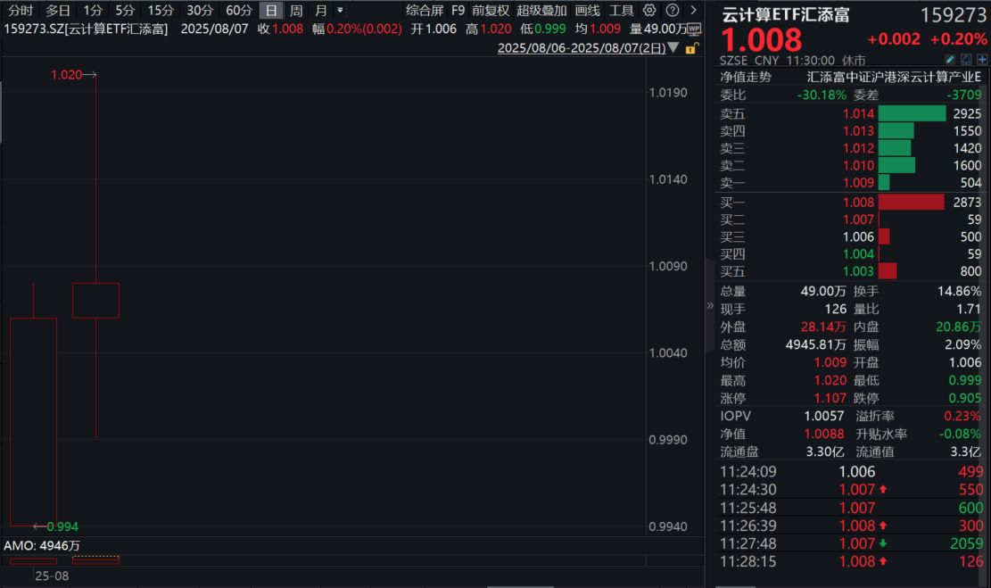GPT-5发布在即!海外AI大模型接踵而至,算力需求猛增!云计算ETF汇添富(159273)盘中翻红,溢价持续高企!