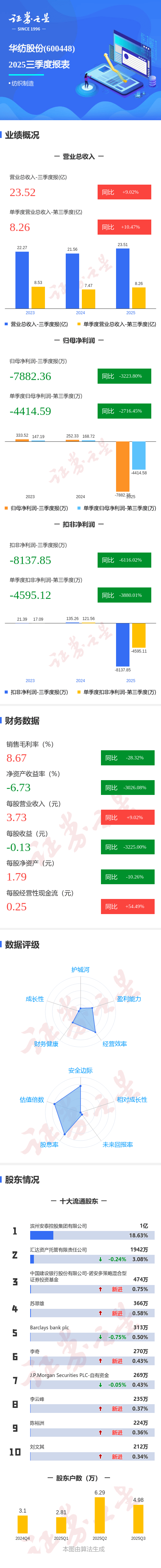 图解华纺股份三季报:第三季度单季净利润同比下降2716.46%