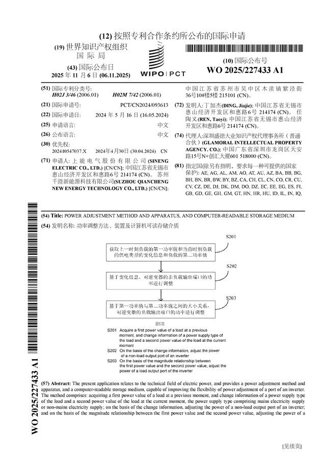 上能电气公布国际专利申请:“功率调整方法、装置及计算机可读存储介质”