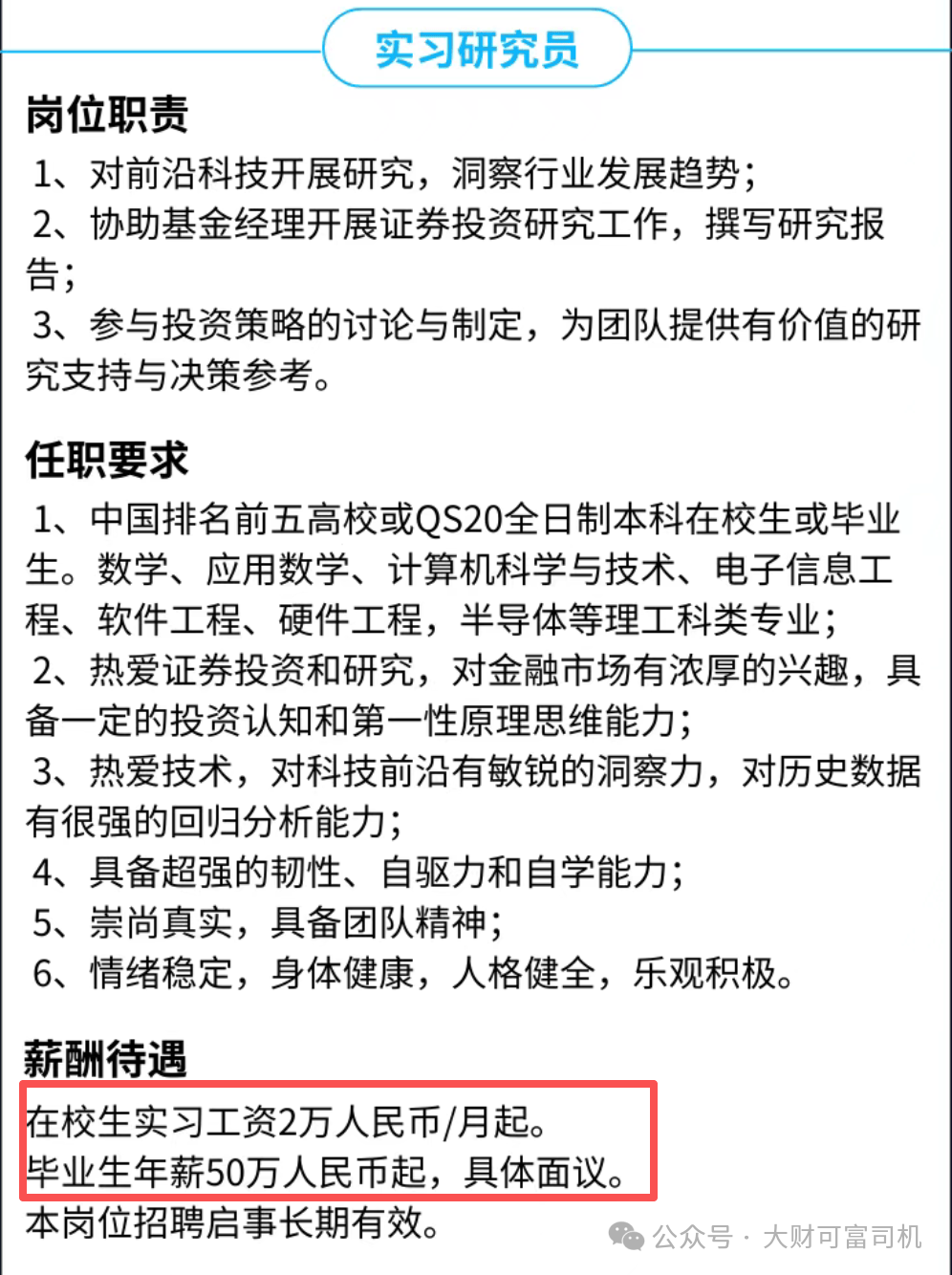 基金公司疯卷实习生:月薪2万起,毕业生50万年薪!