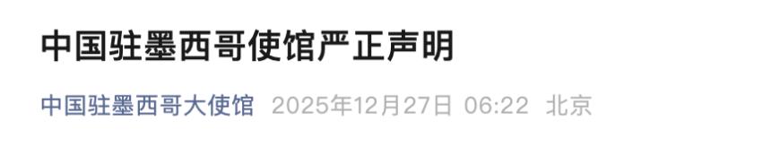 中国驻墨西哥使馆:奉劝纳瓦罗之流认真反思错误,停止自欺欺人的表演