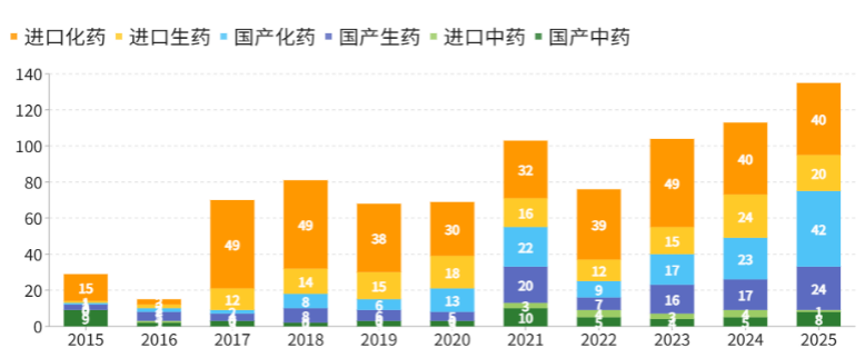 未来的中国创新药必须从"规模叙事"转向"价值叙事"。 北京大学药学院 陈敬 李惟妙 黄佳欣 姚泽坤 张逸晨 史录文 过去十年,是中国创新药产业从"追赶"到"爆发"的黄金时代。在政策红利、人才回归与资本助力下,我国医药研发实现了跨越 式发展 。然而,当规模化产出成为常态,我们也正步入一个深水区,研发靶点高度扎堆,同质化竞争诱发的"内卷式降价"情况 值得重视 。这种竞争环境正呈现出一把"双刃剑"特征:一方面,激烈的市场博弈大幅提升了高品质药物的可及性与公平性,让 患者以更低成本获得先进治疗;另一方面,受到压缩的利润空间也给本土企业的持续研发能力带来了产业性挑战。面对国内存 量市场的红海竞争,中国创新药需通过差异化研发与全球化布局,将视野扩展至全球市场,方能实现产业逻辑的重构。 一、规模化产出与结构性挑战 图2 2015-2025年中国创新药临床试验药品类型分布 (数据来源:医药魔方PharmaGo数据库) 2015至2025年间,中国创新药对外授权(License-out)实现跨越式增长,年交易数量从6项升至114项。2025年,披露总金额超过 1300亿美元,标志着中国医药创新获得了国际市场的认可(详见图3)。 ...
