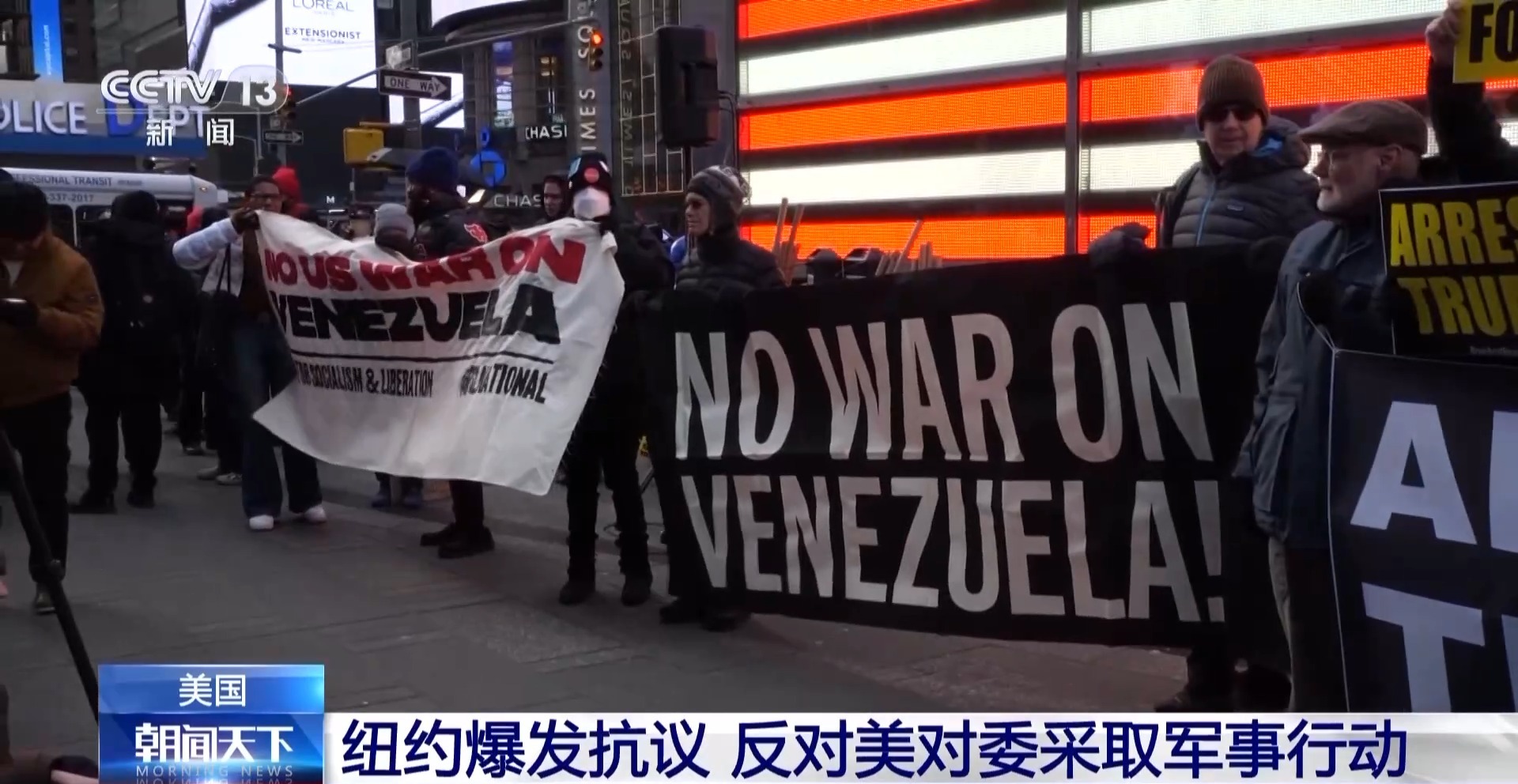 总台现场直击丨美国纽约爆发抗议 反对美对委采取军事行动