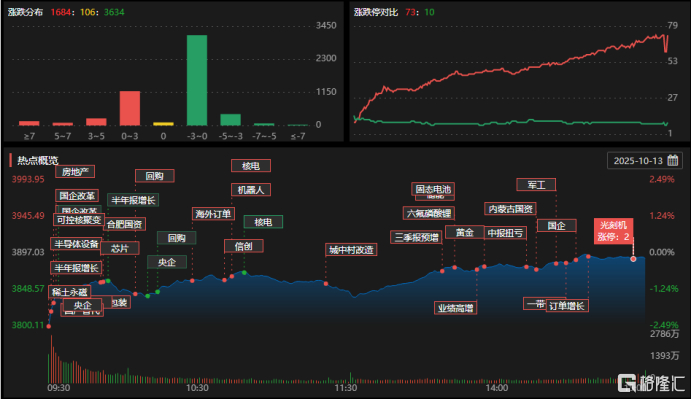Market Overview - On October 13, the trading volume of the Shanghai and Shenzhen stock markets reached 2.35 trillion yuan, a decrease of 160.9 billion yuan compared to the previous trading day [1] - Sectors such as rare earth permanent magnets, precious metals, photolithography machines, semiconductors, small metals, and military equipment saw significant gains, while automotive parts, gaming, consumer electronics, cultural media, and weight loss drugs experienced declines [1] High-Performing Stocks - Bluefeng Biochemical achieved a 9.98% increase, marking its 8th consecutive trading day of gains [3] - Controlled nuclear fusion concept stock Hezhong Intelligent rose by 10.01%, with 6 consecutive days of gains [3] - Tianji Co., a lithium hexafluorophosphate concept stock, increased by 9.99%, with 5 days of gains [3] - Other notable stocks include Shida Shenghua (+9.99%), Shen Zhenye A (+9.97%), and Antai Technology (+9.99%) [4] Trading Dynamics - The top three net purchases on the daily leaderboard were China Rare Earths (267 million yuan), Duofluor (262 million yuan), and Wangzi New Materials (238 million yuan) [6] - The top three net sales were Ganfeng Lithium (165 million yuan), Baiyin Nonferrous Metals (153 million yuan), and Guanzhong Ecology (88.9 million yuan) [6] Sector Highlights - China Rare Earths saw a significant increase in its stock price following the announcement of export controls on certain rare earth equipment and materials, which is expected to enhance supply chain management [13] - Baogang Group and Northern Rare Earth raised the trading price of rare earth concentrates to 26,205 yuan per ton, a 37.13% increase, boosting industry profitability expectations [13] - Duofluor, involved in lithium hexafluorophosphate and solid-state batteries, reported a trading volume of 33.62 billion yuan with a 9.98% increase [14] - Wangzi New Materials, focusing on controlled nuclear fusion and military electronics, also saw a trading volume of 12.31 billion yuan with a 9.98% increase [17] Institutional Activity - Institutional net purchases were significant in stocks like Duofluor (177 million yuan), Wangzi New Materials (139 million yuan), and Northern Long Dragon (113 million yuan) [8] - Conversely, net sales were observed in Ganfeng Lithium, Tianji Co., and China Rare Earths, indicating a shift in institutional sentiment [9]