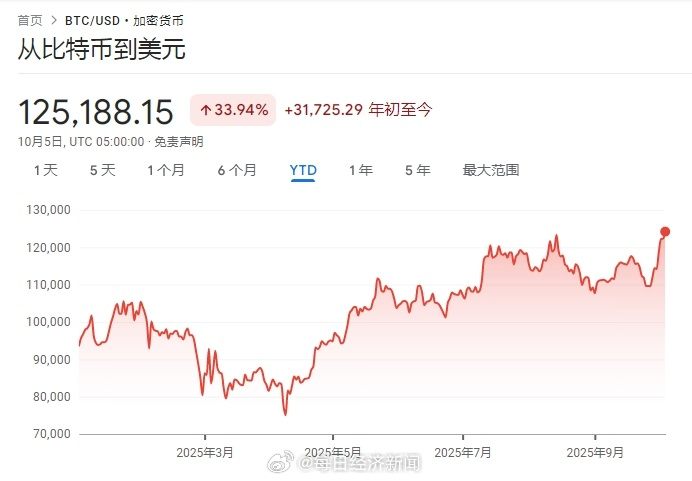 比特币价格突破12.5万美元 刷新历史最高纪录