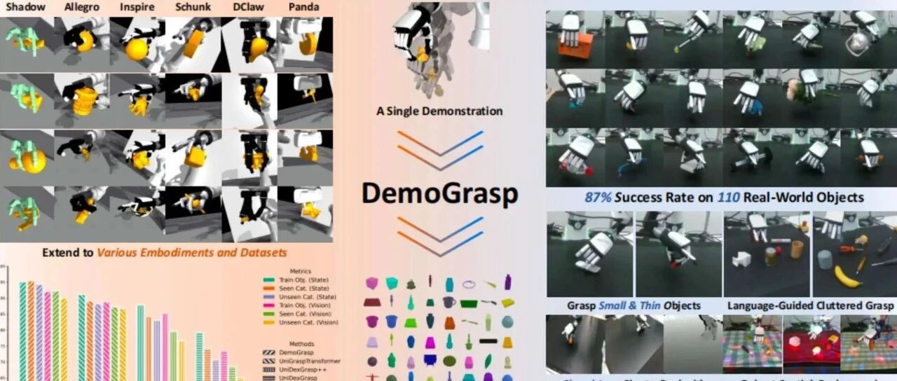 仅需 1 次演示,机器人就能像人手一样抓遍万物?DemoGrasp 刷新灵巧抓取天花板