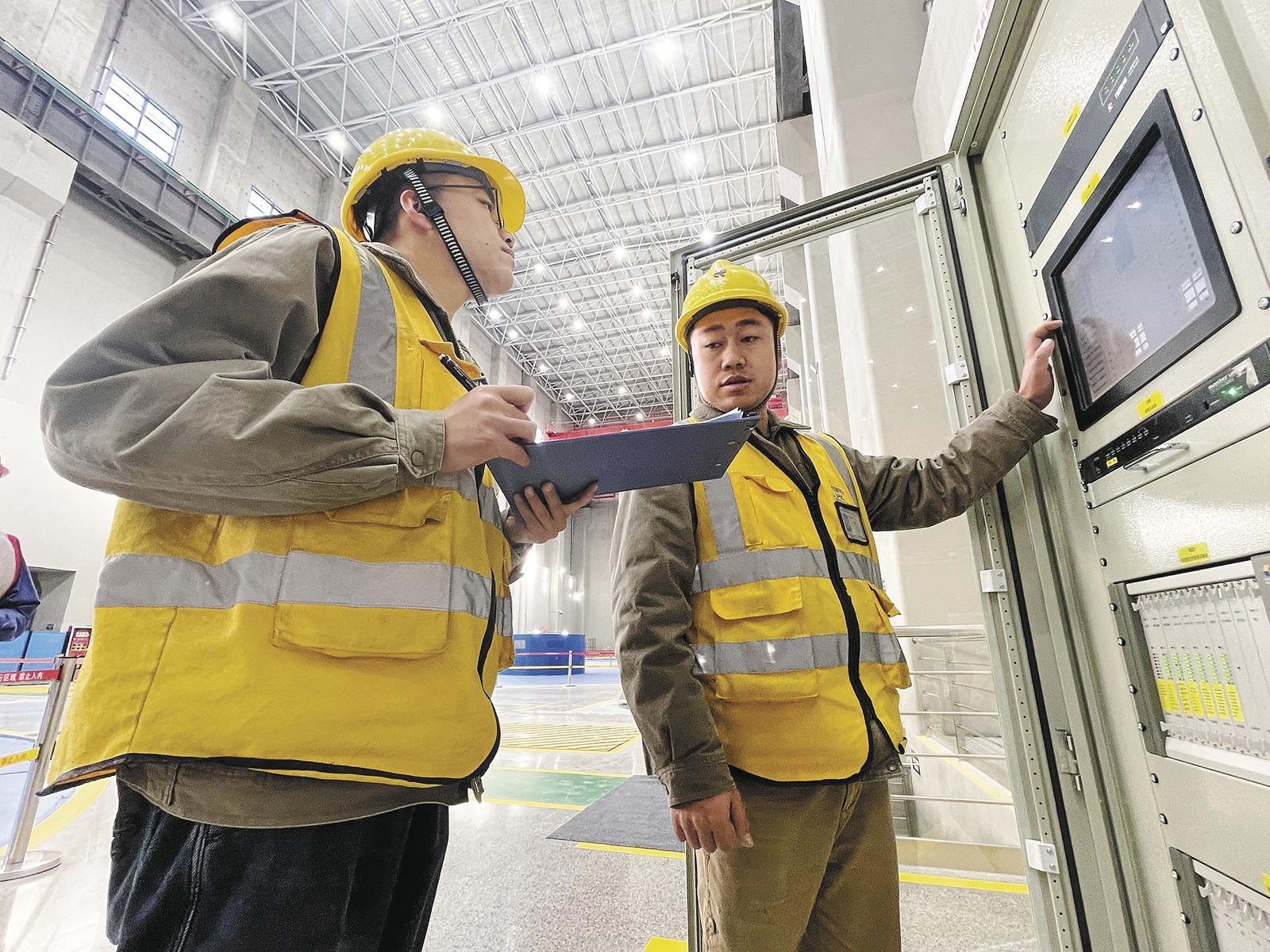 记录相关数据。 精细检查每一个零部件。 本报记者 祁万强 程宦宁 中央控制室里,巨大的屏幕几乎占据整面墙壁。不同的数据不停"流动":流量、电压、机组出力、水库水位……工作人员端坐在电脑前,有条不紊地监测各 项数据。屏幕上数字跳跃间,水电站的每一次"呼吸"都被精准捕捉。 1月17日,记者走进黄河上游水电开发有限责任公司羊曲发电分公司(以下简称羊曲水电站),看到一幅争分夺秒、紧张有序的生产景象。工作人员以"起步 即冲刺、开局即决战"的精气神投入到各岗位的工作中。 位于海南藏族自治州黄河上游峡谷深处,滔滔黄河水携带着磅礴势能奔涌而下。共和县与贵南县交界处的羊曲河段,一座现代化水电站如巨人般矗立——这 里不仅是黄河上游重要的清洁能源基地,更跳动着一颗引领行业变革的"数字心脏"。 "去年,羊曲水电站累计发电42.1亿千瓦时。今年,是'十五五'的开局之年,我们以'开局即决战'的紧迫感和实干争先的奋斗姿态,力争发电量达到44亿千瓦 时。"在中央控制室内,生产部副主任王朝鹏语气沉稳,话语中带着自豪。 "走,我带你去看看羊曲水电站的核心区域。"王朝鹏话音未落,便迈开了脚步。 主厂房是水电站的核心动力区域。这里安装的水轮发电机组 ...