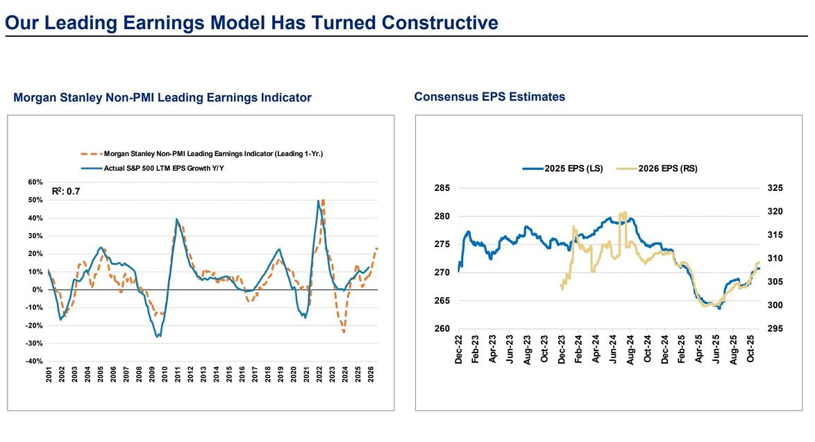 Core Viewpoint - Morgan Stanley predicts a strong economic growth effect from the "One Big Beautiful Bill" (OBBBA) passed by the Trump administration in 2025, starting in 2026, leading to a "Goldilocks" macroeconomic environment in the U.S. with moderate growth and inflation [1][8]. Economic Outlook - The U.S. stock market has transitioned from a three-year "rolling recession" to a "rolling recovery," characterized by improved cost structures, strong earnings revisions, and released pent-up demand, creating a typical early-cycle environment [2]. - The Federal Reserve's anticipated interest rate cuts are expected to initiate a new capital expenditure cycle, with corporate investments, particularly in AI and manufacturing, becoming new growth engines [2]. Market Dynamics - The "Magnificent Seven" tech giants, including Nvidia and Google, will continue to lead earnings revisions in 2025, with expectations spreading to the S&P 493 constituents, particularly in industrial and financial sectors [6]. - Morgan Stanley defines the current situation as a "second phase bull market under rolling recovery," emphasizing a return of market risk appetite and broadening investment opportunities across various sectors [6][15]. Investment Strategy - Morgan Stanley recommends an "overweight" position in cyclical sectors such as financials, industrials, healthcare, and consumer discretionary goods, while suggesting a "low weight" in staples and real estate [13][14]. - The firm anticipates that the S&P 500 index could reach 9,000 points by 2026, driven by strong corporate earnings growth and AI-related capital expenditures [11]. Broader Market Trends - The market is expected to shift focus from defensive to offensive strategies, with AI remaining a key investment theme but not the sole driver of the upcoming bull market [9]. - The anticipated "risk reboot year" in 2026 will see a significant focus on microeconomic factors, with a unique combination of fiscal, monetary, and regulatory policies providing a strong boost to risk markets [11][14].