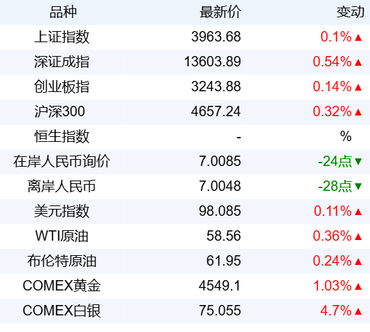 基本金属普涨 沪铜、贵金属续刷新高 碳酸锂涨逾8% 氧化铝涨超5%