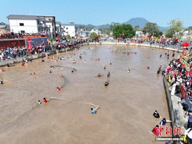 中新网河源2月20日电 (张璐 陈振敏)"渔跃汶水·福启新春"2026年东源县漳溪畲族乡中联村省级非遗汶水 塘捕鱼节(简称"活动")19日在河源举行,2万名游客与村民齐聚汶水塘之畔庆丰收、展非遗、游畲乡、 品美食、享渔趣。 吉时一到,开捕仪式正式启动,随着方言口令"落塘"响起,彩烟绚烂绽放,渔网撒开,水面之上"万鱼 跃塘"的壮观景象惊艳全场,每一次拉网、每一次鱼跃,都承载着丰收的喜悦与新春的好运。在塘中捕 鱼的村民们齐心协力拉网捕鱼,鲜活肥美的大鱼接连跃出水面,现场欢呼声、喝彩声此起彼伏,大家共 同见证这份满载希望的收获,感受传统集体捕鱼的独特乐趣。 活动现 压轴的"头鱼"拍卖活动点燃全场热情。三条体型硕大、活力十足的"头鱼"亮相,最终依次成交。 场。 杨坚 摄 据了解,当天活动带动住宿人数超100人,本地餐饮收入超26万元,本地景区收入超20万元。(完) 据了解,汶水塘集体捕鱼活动已延续400年。汶水塘捕鱼节于2022年被列入广东省第八批省级非物质文 化遗产代表性项目名录。汶水塘捕鱼节不仅是畲乡人民庆祝丰收、祈福纳祥的传统习俗,更是漳溪畲族 乡传承畲族文化、推进"百千万工程"的重要载体。 当日上午,活动拉开 ...