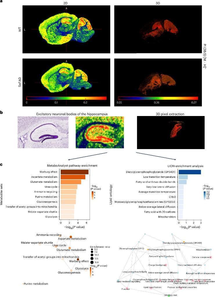 作为原理证明,团队利用MetaVision3D,生成了正常小鼠和罹患阿尔茨海默病、庞贝氏症(一种罕 见的遗传性疾病)的小鼠大脑代谢组的3D交互式图谱。 为绘制这些3D图谱,研究团队使用高科技成像仪,逐层扫描了79个大脑切片。这台仪器可识别并计 数脂肪、碳水化合物等分子,这些分子是实现大脑功能的必需营养素。随后,他们使用AI工具将这些图 像堆叠在一起,重建了整个大脑的代谢组。 研究示意图。图片来源:《自然·代谢》杂志 代谢组是为大脑运作提供能量的数千个分子的集合。这一进展使科学家能更全面地了解代谢在阿尔 茨海默病和其他神经退行性疾病中的作用,从而发现治疗这些疾病的新药。 AI新工具创建大脑代谢组高清3D图谱 研究团队表示,利用该方法可绘制出大脑内数千种分子及其在大脑中精确位置。在线用户可在3D重 建中探索大脑代谢组的各个部分,从而揭示传统2D图谱中看不到的细微差别,为研究受饮食、运动和遗 传影响的细胞代谢和疾病机制提供新见解。例如,科学家可利用该工具探索和检查影响思维、记忆和大 脑健康的分子,包括那些与神经退行性疾病有关的分子。 美国佛罗里达大学研究团队借助超级计算机,创建出一款强大的人工智能(AI)工具 Me ...