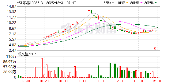 公司12月22日在交易所互动平台中披露,截至最新(12月20日)股东户数为24000户,较上期(12月10 日)减少2600户,环比下降9.77%。这是该股股东户数连续第2期下降,也就是说筹码呈持续集中趋 势。(数据宝) (文章来源:证券时报网) 近日该股表现 *ST东易再度涨停,8个交易日内录得5个涨停,累计涨幅为21.96%,累计换手率为47.31%。截至9:25, 该股今日成交量0.69万股,成交金额6.20万元。最新A股总市值达85.44亿元,A股流通市值47.28亿元。 | 日期 | 当日涨跌幅(%) | 换手率(%) | 主力资金净流入(万元) | | --- | --- | --- | --- | | 2025.12.30 | 5.04 | 0.02 | 85.04 | | 2025.12.26 | 1.01 | 8.42 | -1753.91 | | 2025.12.25 | 5.01 | 5.76 | 3678.88 | | 2025.12.24 | -0.48 | 6.50 | 1344.95 | | 2025.12.23 | -5.01 | 8.87 | -4875.34 | | 202 ...
