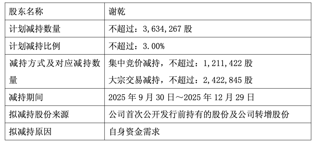 天银机电(300342)(300342.SZ)公告,公司控股股东佛山市澜海瑞兴股权投资合伙企业(有限合伙)(简 称"澜海瑞兴")计划在2025年12月15日至2026年3月14日以集中竞价方式减持公司股份不超过425.0351万 股(占公司总股本比例1.00%),以大宗交易方式减持公司股份不超过850.0702万股(占公司总股本比例 2.00%)。 ...