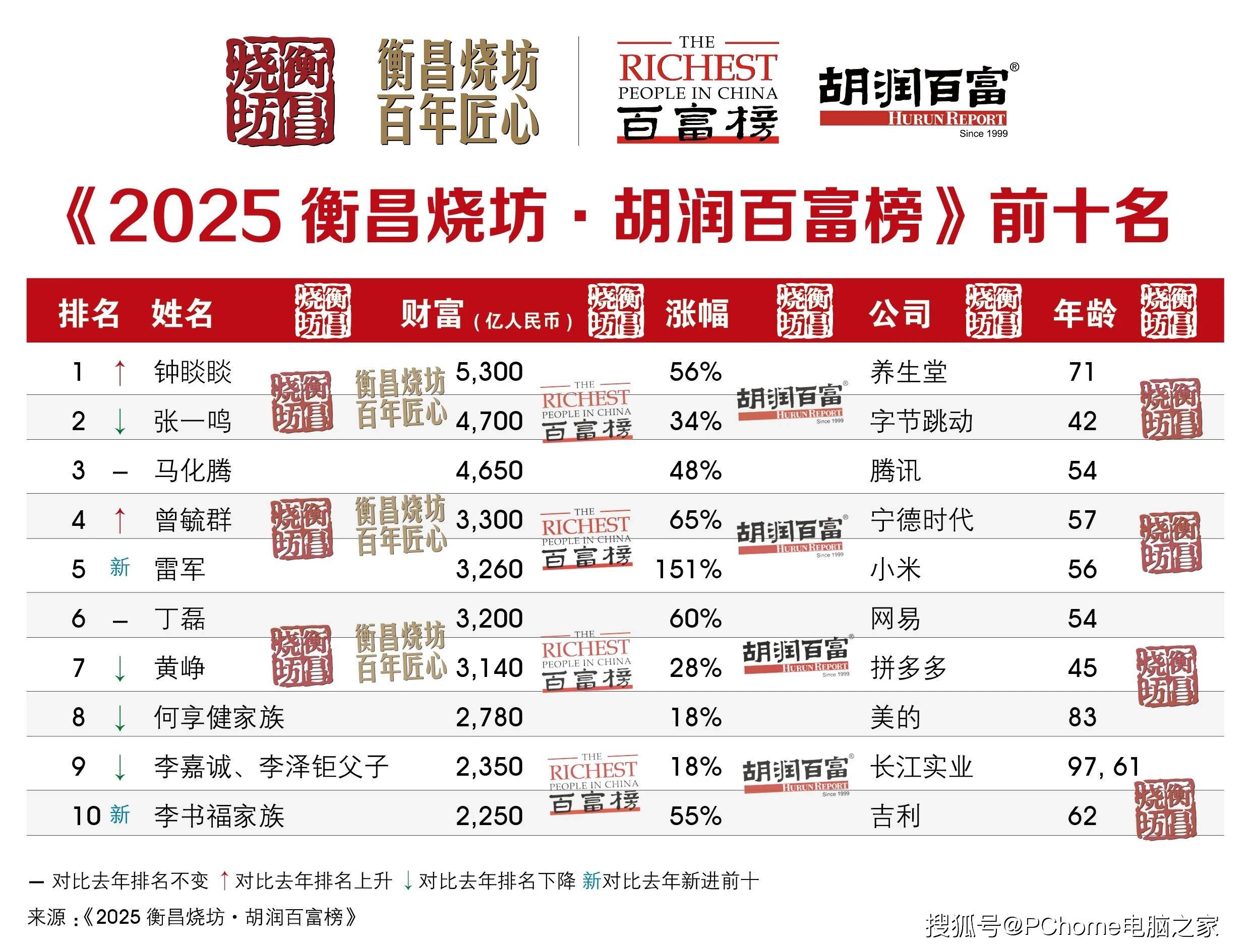2025胡润百富榜公布:钟睒睒财富5300亿元,位列第一