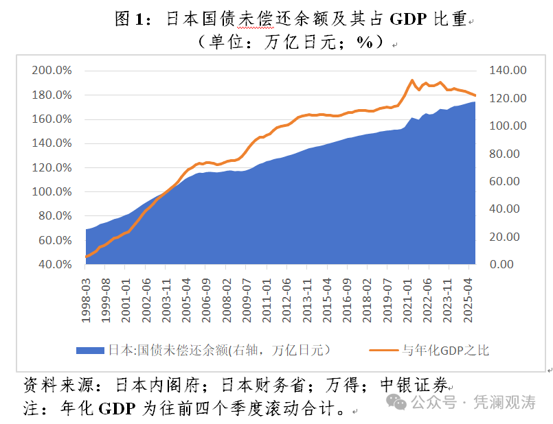 管涛 | 立方大家谈专栏作者 日本债市被称为史上最坚硬的泡沫之一。2026年1月20日,日本国债市场遭遇冲击,40年期国债收益率盘间突破4%,创2007年发行以来最 高,也是三十多年来日本各期限主权债券中首次出现这一收益率水平。当日,日本10年、20年、30年期国债收益率也均录得史上或三十年 来新高。日本长期国债收益率飙升,反映了市场以"用脚投票"的方式表达对日本财政状况恶化的担忧。在多重目标约束下,日本央行或将 继续谨慎推动货币政策正常化,常年量化宽松之后的日本成功退出依然前途未卜。 高市早苗表态引爆日本债市动荡 日本政府债台高企与日本经济"失去的三十年"密切相关。上世纪九十年代资产泡沫破裂,将日本推入资产负债表衰退。在非金融企业和家 庭部门大幅去杠杆的背景下,日本政府不得不通过财政扩张来应对经济下行。在持续的财政刺激下,日本国债余额与年化国内生产总值 (GDP)之比节节攀升,高至190.5%,到2025年9月末仍有179.5%(见图1)。国际货币基金组织(IMF)数据显示,2024年底日本政府债 务与GDP之比为237%,系全球发达经济体中最高。 2025年10月高市早苗政府上台以来,打出"扩张财政+减税 ...