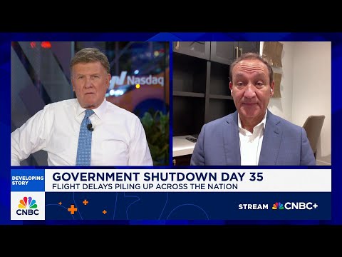 Flight delays are growing as the government shutdown stretches to five weeks. An airline industry group says more than three million US passengers have been affected. Joining us now is Oscar Munoz, former United Airlines CEO uh and chairman and a CNBC contributor.Uh it's good to see you. Uh Oscar, what I guess you can just give us your thoughts on on on the whole process and then we'll we'll get to specifics. uh in terms of I mean how many how many how many flights do you need to cut back on to have the sam ...