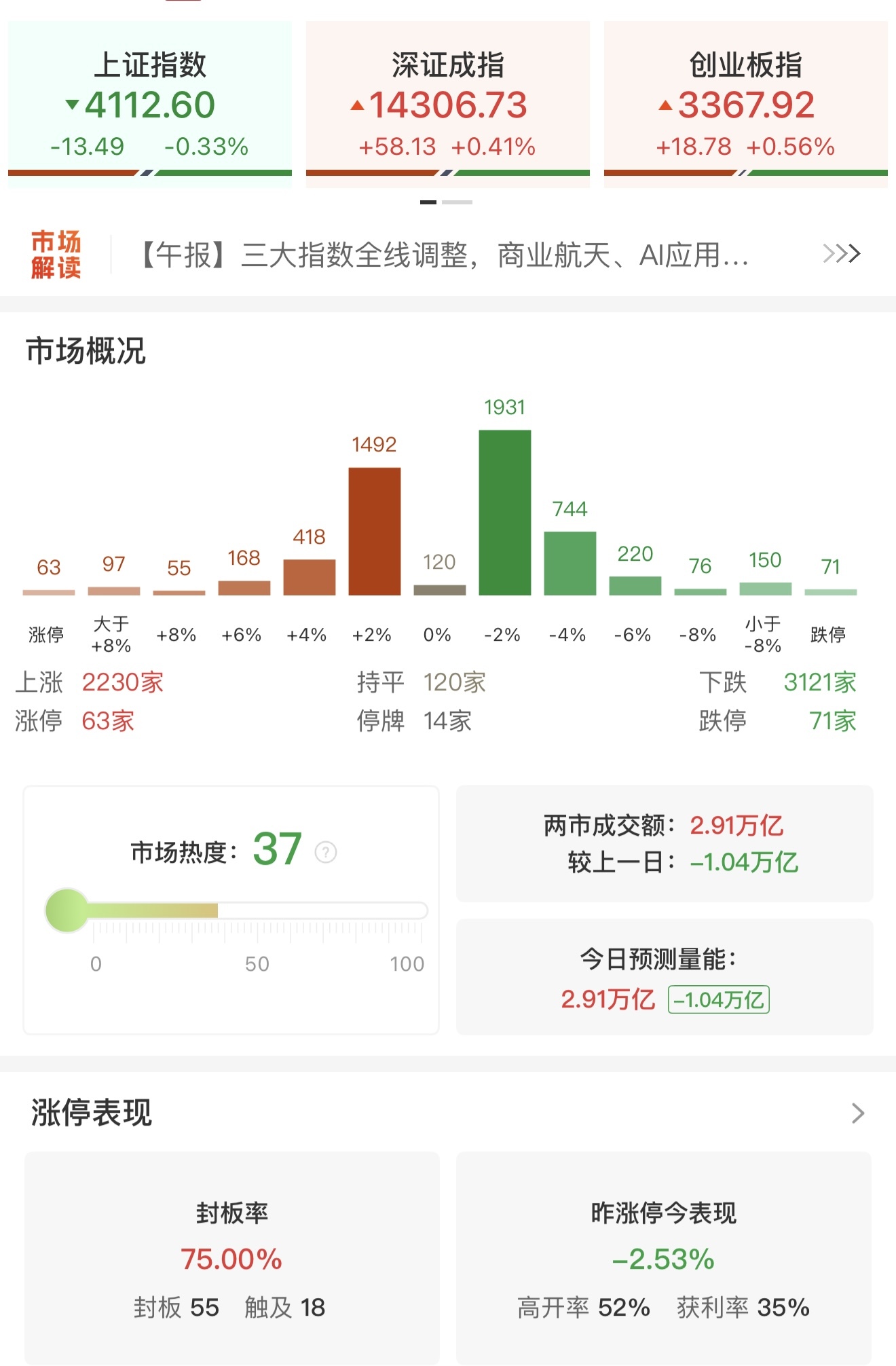 收评:沪指跌0.33%守住4100点,两市成交额萎缩超1万亿