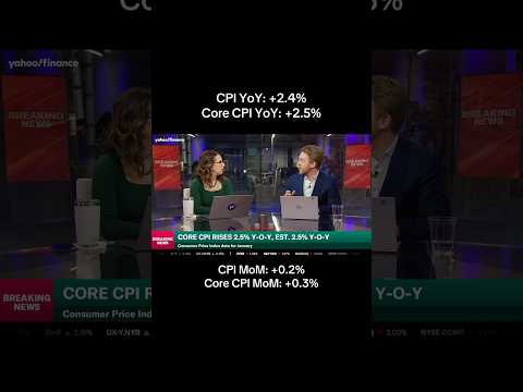 Welcome to Yahoo Finance's special coverage of the January consumer price index report. We are getting the numbers and month- over-month inflation 0.2% a little bit more subdued than the 0.3% month overmonth gain that economists had expected. Core CPI month overmonth 0.3% that is a little bit of an acceleration.That's in line with analyst estimates. And then just as we saw the month overmonth coming in a little lower, we see it for year-over-year 2.4%. 4% the headline consumer inflation number year-over-yea ...