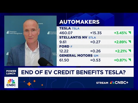 Joining us now is Gene Monster, managing partner, Deep Water Asset Management. Gan, why would this be good news. >> Brian, uh before that, I just want to acknowledge that there is a near-term benefit undoubtedly from the tax credit.If we zero in on the numbers we're going to see tomorrow, this 400 and call it 75 80,000 deliveries, about 40,000 of those are likely coming from pull forward in demand because people want to make buy a car that's 15% less expensive. And so, uh, start there is that cheaper cars d ...