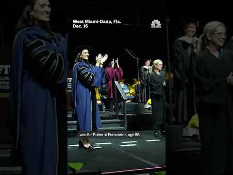And out of our southern bureau, a pretty special moment at a college graduation in Florida. A student getting his day in the sun decades after first setting foot on campus. >> That roaring applause was for Roberto Fernandez, age 85, who enrolled at FIU back in 1972, but wasn't able to finish his degree.He found out he needed just one more class to graduate a few years back. So, we hit the books. He calls graduating from college his life goal. ...