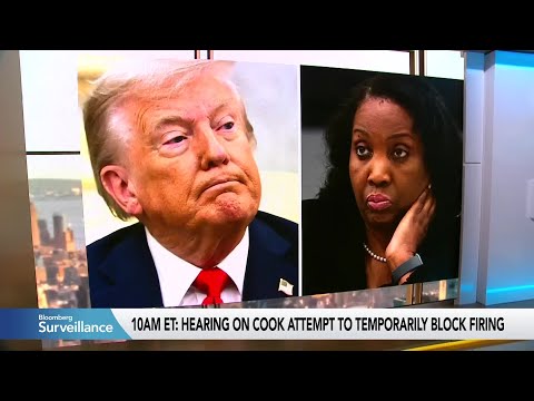 Turning back, though, quickly to the legal fight between Trump and Governor Lisa Cook. Bloomberg's Tyler Kendall is outside the courthouse in Washington and joins us now. Tyler, what's the latest.Yeah. Hey, Amari. Well, I'm expecting it to get a lot busier where I am shortly as this federal judge is expected to start looking into this case brought by Fed Governor Lisa Cook against President Trump over his attempts to oust her from the Federal Reserve.Now, the first matter at hand is that Cook has filed for ...