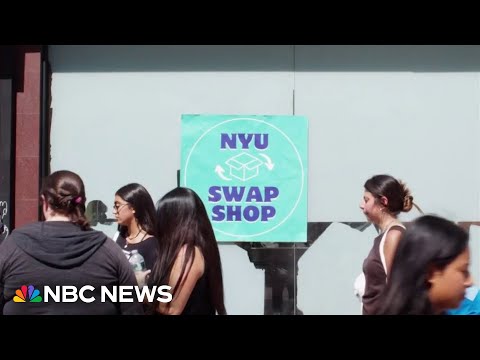 I think it's hard enough to be a student. It's expensive enough. >> Here at NYU's very first ever swap shop.Trash is being turned into treasure. This now abandoned grocery store completely transforming into a shop where students can pick up free essentials like this mini fridge. >> We had books, we had clothing, we had home supplies.We had about 155 microwaves and 1,800 people showed up. >> In an effort to stop these gently used items from heading to landfills, students spent months planning this ambitious ...