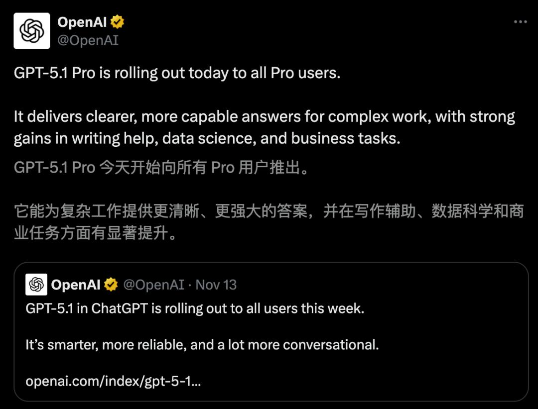 OpenAI深夜双王炸,GPT-5.1 Pro紧急发布,降维打击Gemini 3