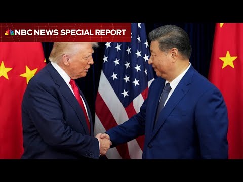 I'M GADI SCHWARTZ IN LOS ANGELES. LET'S GO LIVE NOW TO BUSAN, SOUTH KOREA, WHERE PRESIDENT TRUMP IS ABOUT TO HOLD A FORMAL MEETING WITH CHINESE PRESIDENT XI JINPING. THEY'VE BOTH ARRIVED AT JIM HI INTERNATIONAL AIRPORT.YOU CAN SEE THEM SHAKING HANDS NOW. IN A FEW MOMENTS, THEY'RE GOING TO GO INSIDE THE AIRPORT'S VISITOR LOUNGE FOR THEIR MEETING. THE TWO LEADERS ARE EXPECTED TO DISCUSS MOVES ON TARIFFS FIGHTING FENTANYL, ACCESS TO RARE EARTH MINERALS.IT COMES AMID THE PRESIDENT'S LOOMING NOVEMBER 10TH DEADLI ...