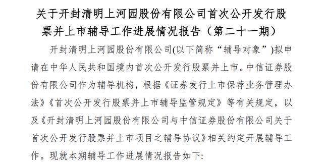 Core Viewpoint - Kaifeng Qingming Riverside Garden Co., Ltd. (Qingyuan Co.) is progressing with its IPO guidance under the supervision of CITIC Securities, focusing on the feasibility of both A-share and H-share listings in the cultural tourism industry [2]. Group 1: Company Overview - Qingyuan Co. was established on March 25, 1998, and operates a theme park centered around Song Dynasty culture, offering services such as tours, dining, accommodation, cultural performances, and parking management [2]. - The company has a registered capital of 70.7 million yuan and is primarily owned by Kaifeng Zhengxin Tourism Development Co., Ltd. (51%), Kaifeng Development Investment Group Co., Ltd. (45%), and Kaifeng State-owned Assets Management Co., Ltd. (4%) [2][3]. Group 2: Management and Control - The actual controller of the company is Wang Shuang, who indirectly holds 51% of the voting rights and serves as both the chairman and general manager [4]. - Wang Shuang has an extensive background in management roles across various companies, including positions in real estate and property management, and has been with Qingyuan Co. since 2009, becoming chairman in April 2012 and general manager in December 2016 [6].