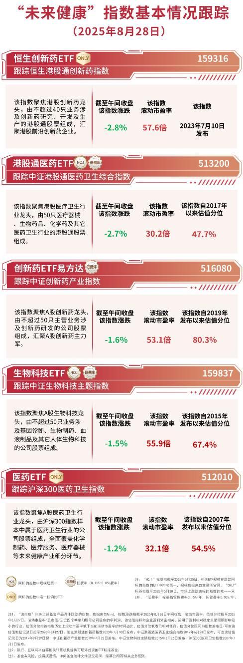 Group 1 - The Hong Kong stock market experienced a collective adjustment, with the Hong Kong Stock Connect Innovative Drug ETF (159570) seeing a significant decline for three consecutive days, dropping over 2% during intraday trading, and achieving a transaction volume exceeding 3.3 billion HKD, with over 43 million HKD raised in a single day [1] - The Innovative Drug ETF (159570) has recorded a net inflow of funds for 28 consecutive days, accumulating over 7.1 billion HKD in the last 20 days, indicating strong investor interest [1] - As of August 26, the latest scale of the Innovative Drug ETF (159570) exceeded 18.9 billion HKD, maintaining a leading position in terms of scale and liquidity [1] Group 2 - Major component stocks of the ETF, including Kangfang Biotech and China Biopharmaceutical, experienced declines of over 3% and 2.5% respectively, reflecting a broader downturn in the sector [2][5] - Kangfang Biotech successfully raised 3.52 billion HKD through the placement of new shares and existing shares to advance the development of innovative antibody drugs, focusing on proprietary intellectual property [2] - The World Lung Cancer Conference (WCLC) is scheduled for September 6-9, 2025, in Barcelona, where Chinese pharmaceutical companies will showcase innovative research results, highlighting the growing importance of domestic innovation in the pharmaceutical sector [3] Group 3 - Recent data from the WCLC indicates that Kangfang Biotech will present clinical research data for its drug AK112, while other companies like Hengrui Medicine and Legend Biotech will also report their clinical findings, showcasing the competitive landscape of innovative drug development [3] - A report from Ping An Securities highlights the emergence of PD-1/VEGF dual antibodies as a significant area of focus, with several companies, including BioNTech and Kangfang Biotech, advancing their clinical trials in this space [4][6] - The Innovative Drug ETF (159570) has shown a remarkable increase of over 109% within the year, outperforming other indices in the healthcare sector, indicating strong market performance and investor confidence in innovative drug companies [7][8]